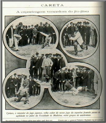 No Rio de Janeiro, o capoeirista Senhor Francisco da Silva Cyríaco, mais conhecido como Cyríaco Macaco Velho luta contra o campeão japonês de jiu-jitsu Sada Miako, um evento autorizado pela polícia como “luta brasileira”. Com surpreendente rabo-de-arraia vencera o campeão que, perplexo, não aceitou a revanche que, ainda no tablado, lhe foi oferecida pelo capoeira.
