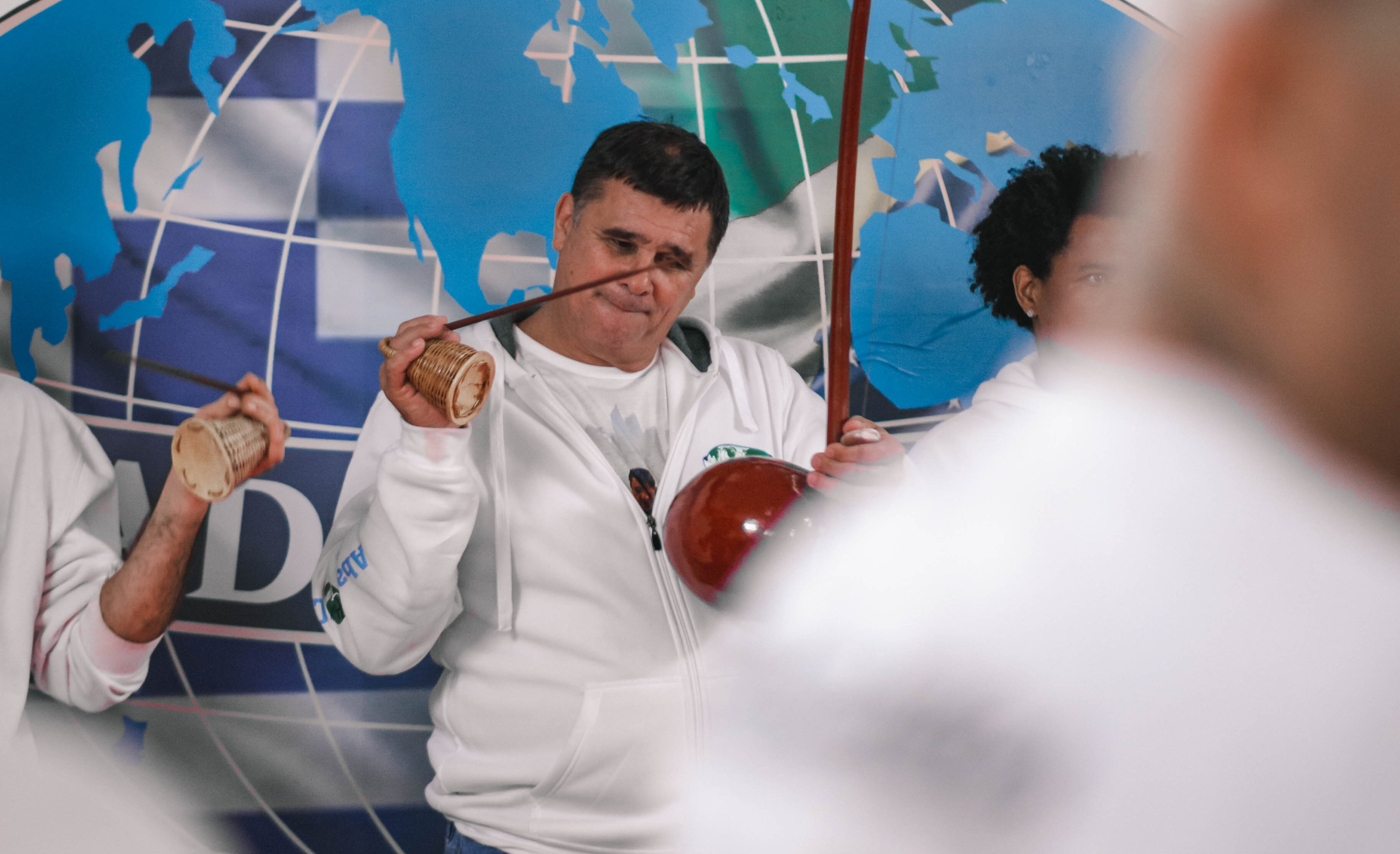 Junto ao berimbau, formam a bateria o atabaque, o pandeiro, o reco-reco e o agogô. Esses instrumentos criam uma sinfonia única, onde cada som se mistura às palmas e ao coro, reforçando a ideia de que a capoeira é uma prática coletiva. Mais do que acompanhar, a música educa, ensina e transmite valores de geração em geração.